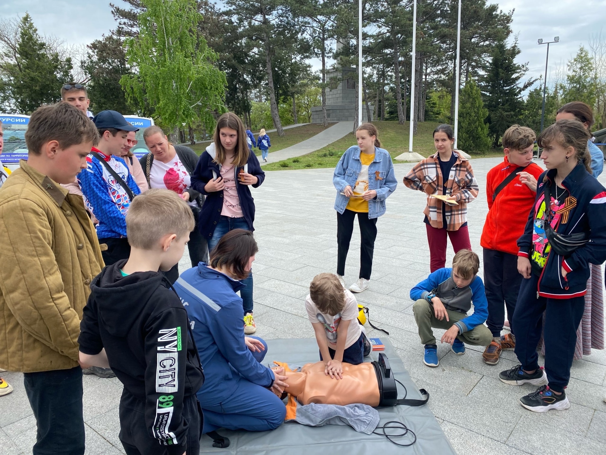 Специалисты Крымского филиала также провели для участников историко-патриотического фестиваля «Знамёна Славы» мастер-класс по оказанию первой помощи пострадавшему. С помощью специальных манекенов, каждый желающий имел возможность провести сердечно-легочную реанимацию и отработать приемы оказания помощи при попадании инородного тела в дыхательные пути.