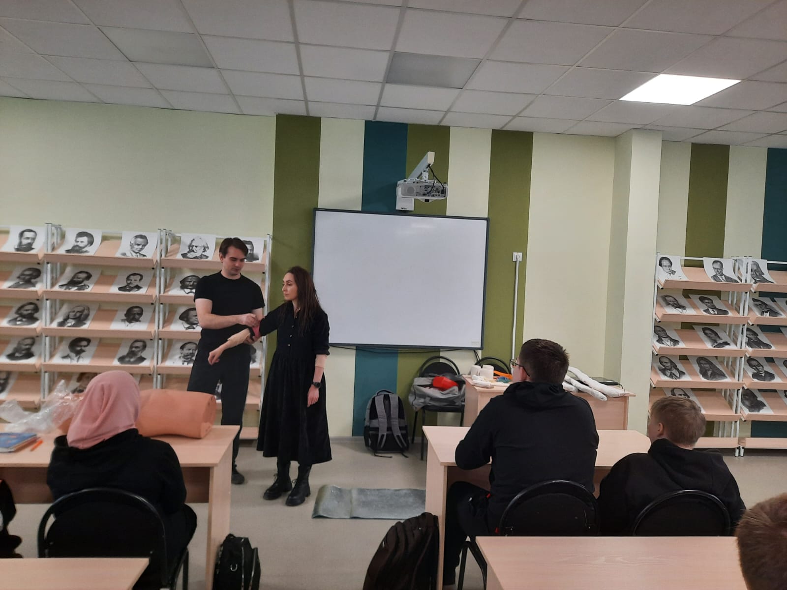 В ходе мастер-классов учащиеся смогли обсудить с психологами Сибирского филиала основные принципы оказания первой помощи и случаи из своего жизненного опыта, когда им самим приходилось сталкиваться с различными ранениями и травмами. В ходе практической части мероприятий школьники научились осуществлять простые приемы по первичной остановке кровотечений, а также узнали, как правильно накладывать давящие повязки и кровоостанавливающие жгуты.