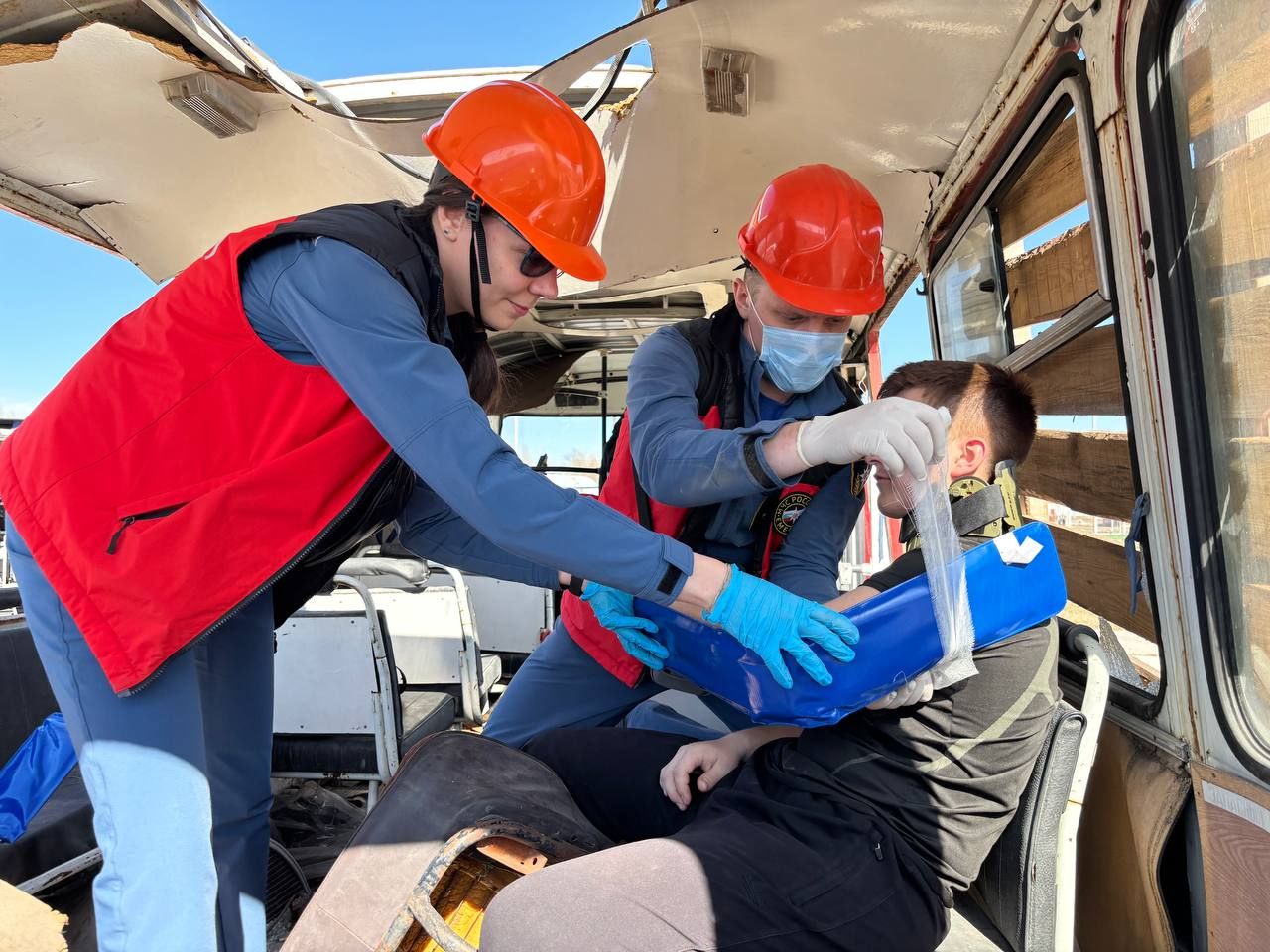 Личный состав Северо-Кавказского филиала показал высокий уровень знаний и навыков по оказанию первой помощи: правильно произведена медицинская сортировка пострадавших, соблюдены алгоритмы оказания первой помощи и последовательность действий.