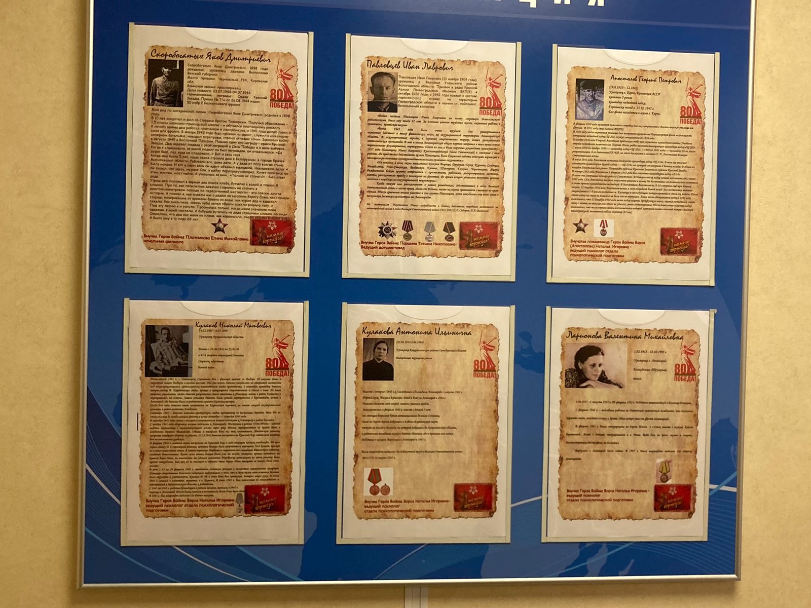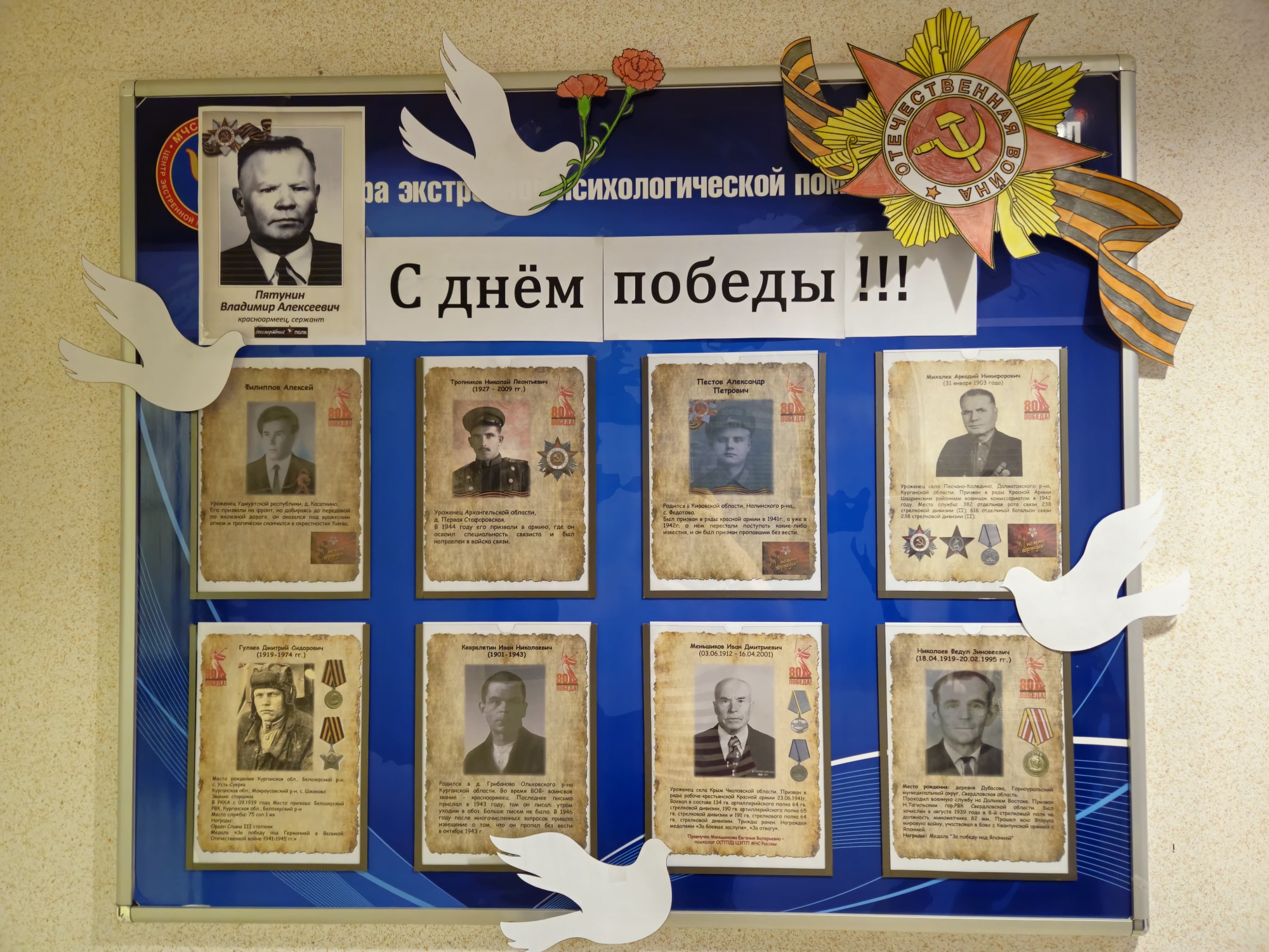 В каждом подразделении была организована Стена памяти героев. На ней размещены фотографии и описание жизненного пути родственников специалистов Центра: дедов, прадедов, бабушек и прабабушек, которые до последней капли крови сражались за победу над фашизмом и за мирное небо над головой своих родных и любимых.