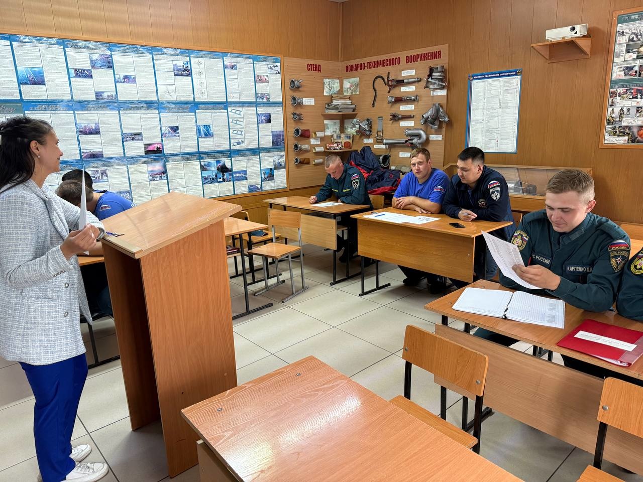 В июне психолог Главного Управления Юлия Свинаренко провела ежегодные занятия по психологической подготовке для личного состава 2 пожарно-спасательного отряда ГУ МЧС по Республике Хакасия. Содержание встреч в этом году предусматривает изучение стресса. Его последствия, с которым сталкиваются специалисты по долгу своей профессиональной службы, могут негативно влиять на различные стороны как профессиональной деятельности, так и повседневной жизни. В связи с этим цель данных мероприятий заключается в актуализации и расширении у личного состава знаний о стрессе и способах его преодоления. Это позволяет поддерживать эффективность выполнения служебных задач, сохранять здоровье и продлить профессиональное долголетие.