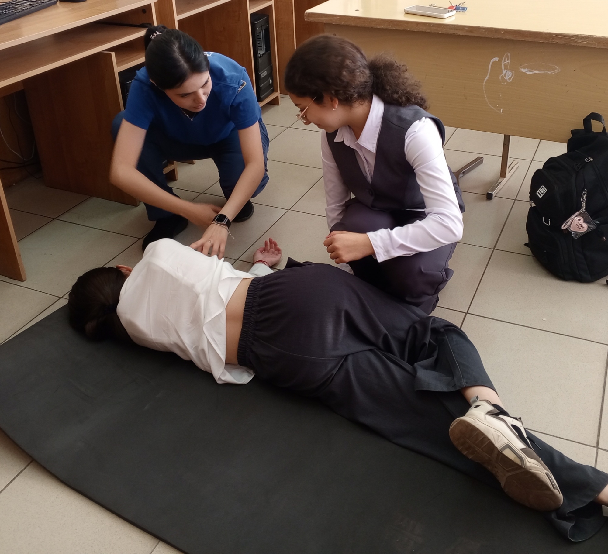 Мероприятие отличалось насыщенной и увлекательной программой. Занятие проходило в формате викторины, что способствовало эффективному повторению и закреплению знаний по оказанию первой помощи. Участники с энтузиазмом включались в активное обсуждение теоретических аспектов и практических навыков. Особое внимание уделялось алгоритму оказания первой помощи при отсутствии сознания, также был рассмотрен способ придания устойчивого бокового положения пострадавшему. Практическая отработка изученного навыка способствовала не только качественному закреплению материала, но и повышению интереса к данной тематике среди учащихся.