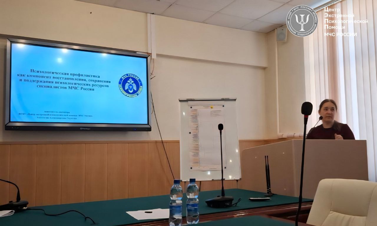 От Центра экстренной психологической помощи МЧС России с докладом «Психологическая профилактика как компонент восстановления, сохранения и поддержания психологических ресурсов специалистов МЧС России» выступила заместитель директора ЦЭПП МЧС России Анастасия Тарасова.