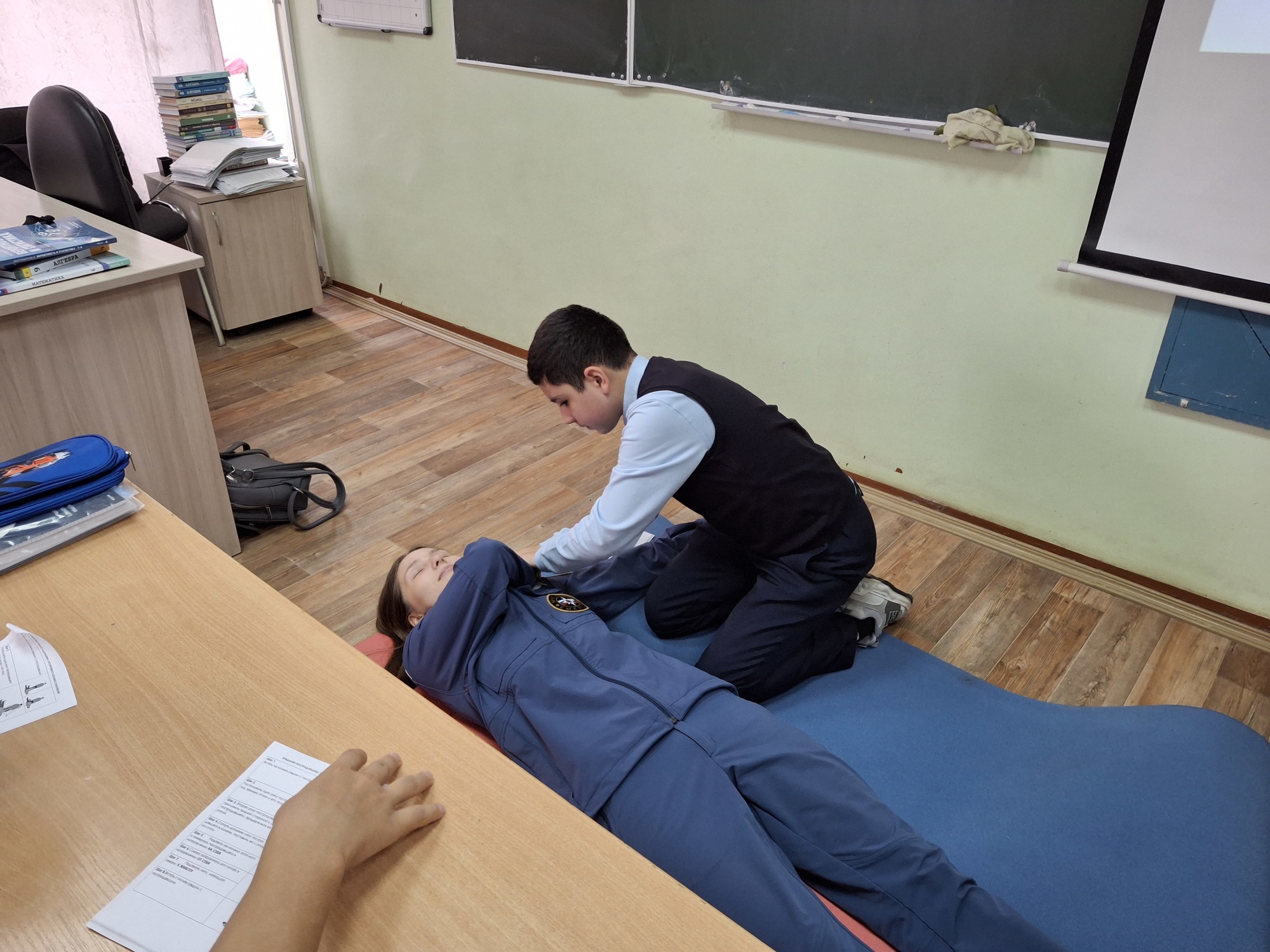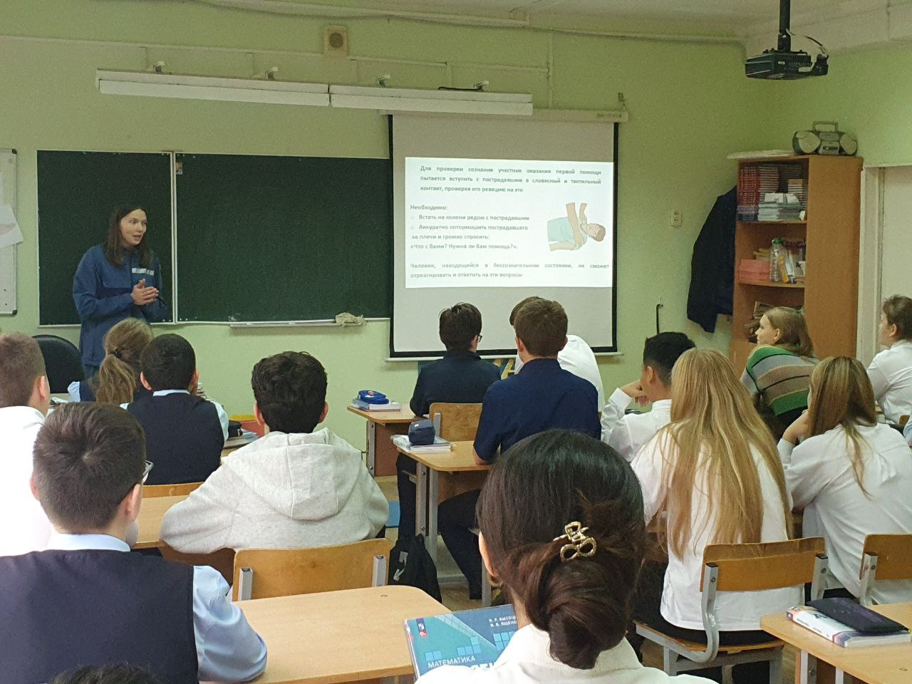 В ходе встречи психолог провела с учениками седьмых классов викторину по ключевым моментам оказания первой помощи, а также отработала в рамках практической части один из приемов – придание устойчивого бокового положения «условному» пострадавшему, находящемуся без сознания. Школьники активно участвовали в отработке навыка, понимая, что эти знания могут спасти чью-то жизнь.