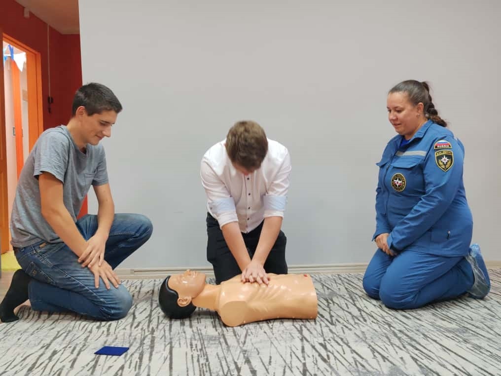 На занятии слушатели познакомились с алгоритмом оказания первой помощи на примере проведения сердечно-легочной реанимации. Специалист филиала рассказала детям о соблюдении правил безопасности при оказании помощи, проверке сознания и основных признаков жизни у пострадавшего, продемонстрировала на манекене алгоритм проведения компрессий и искусственного дыхания.