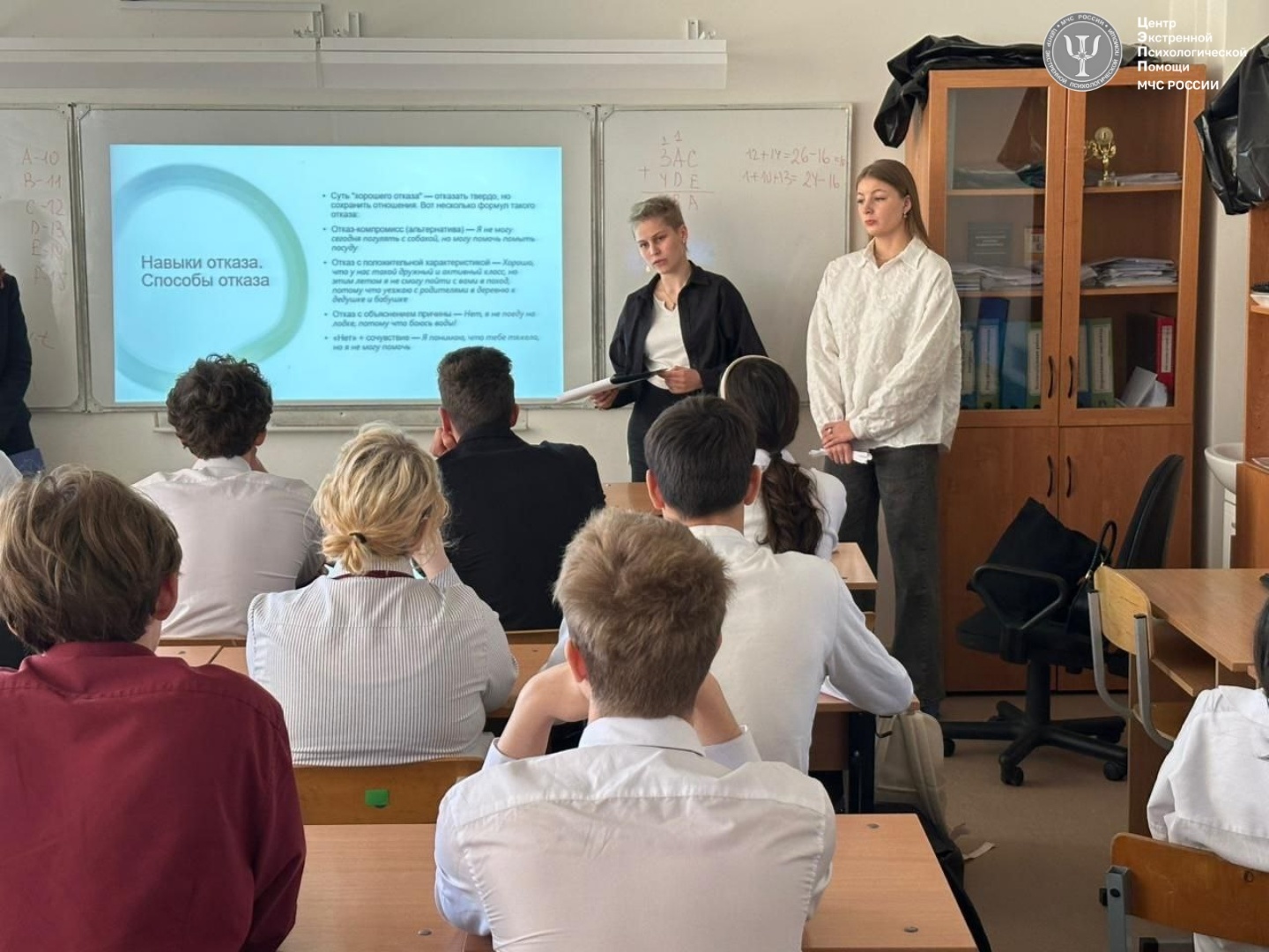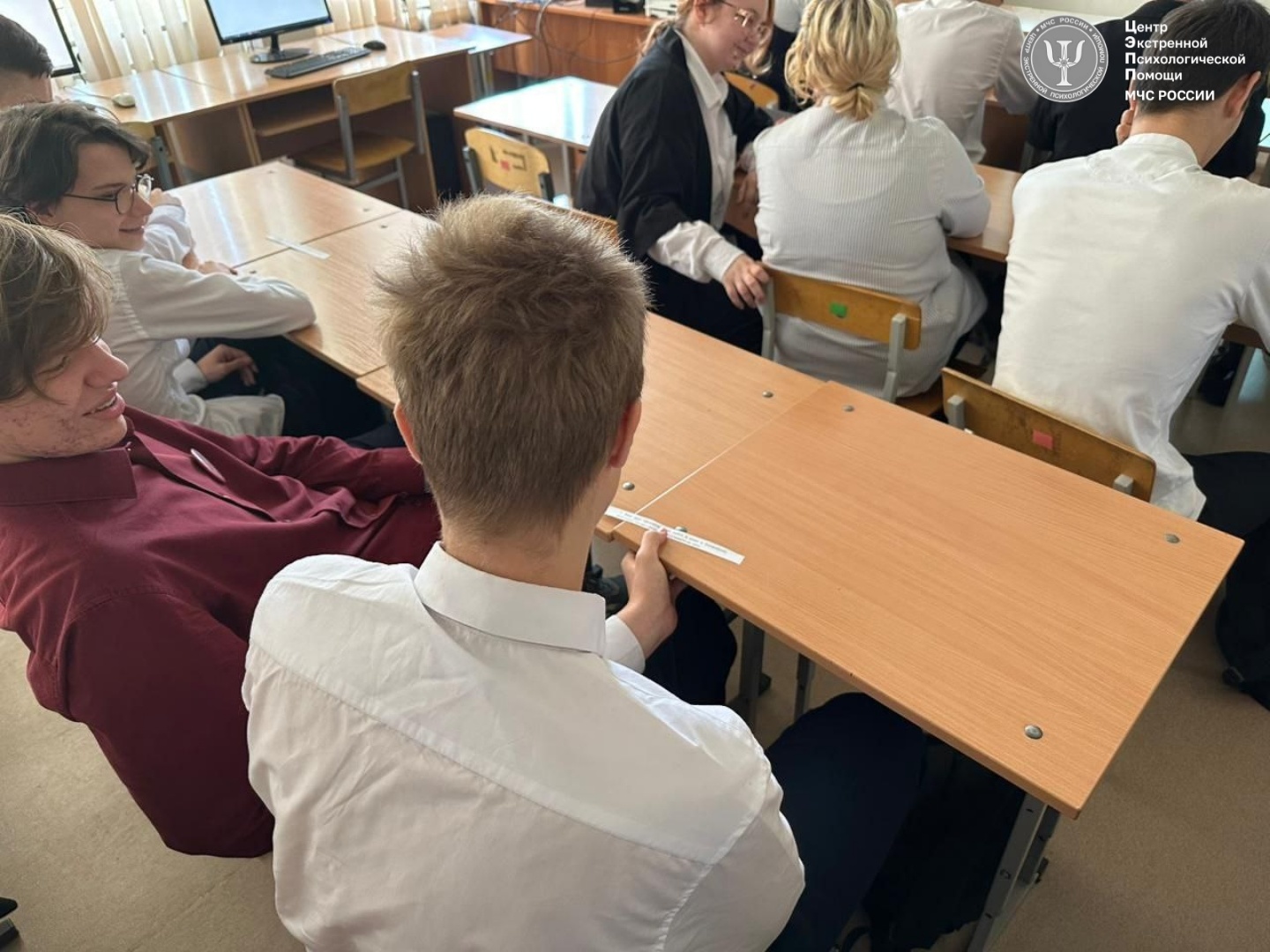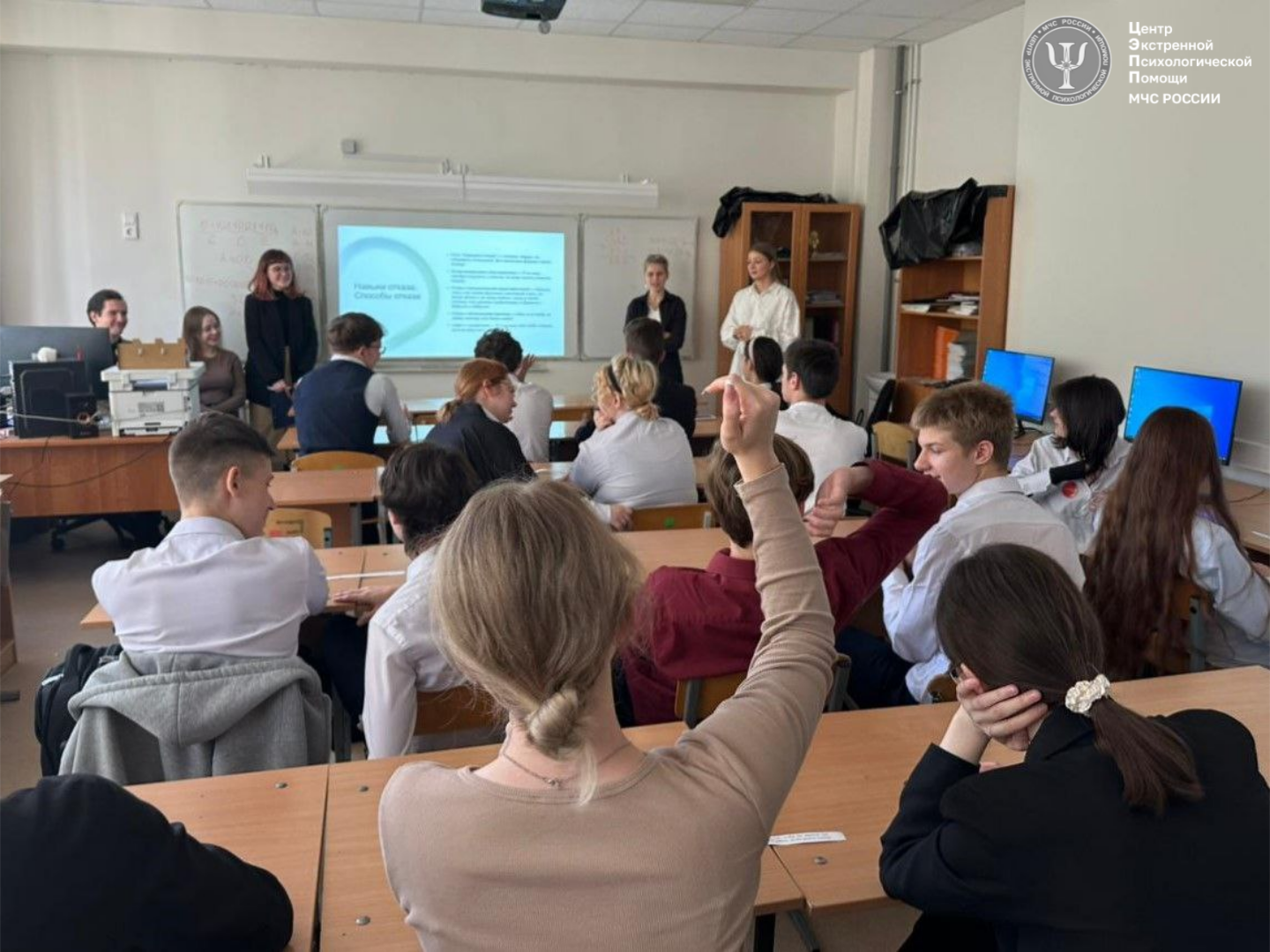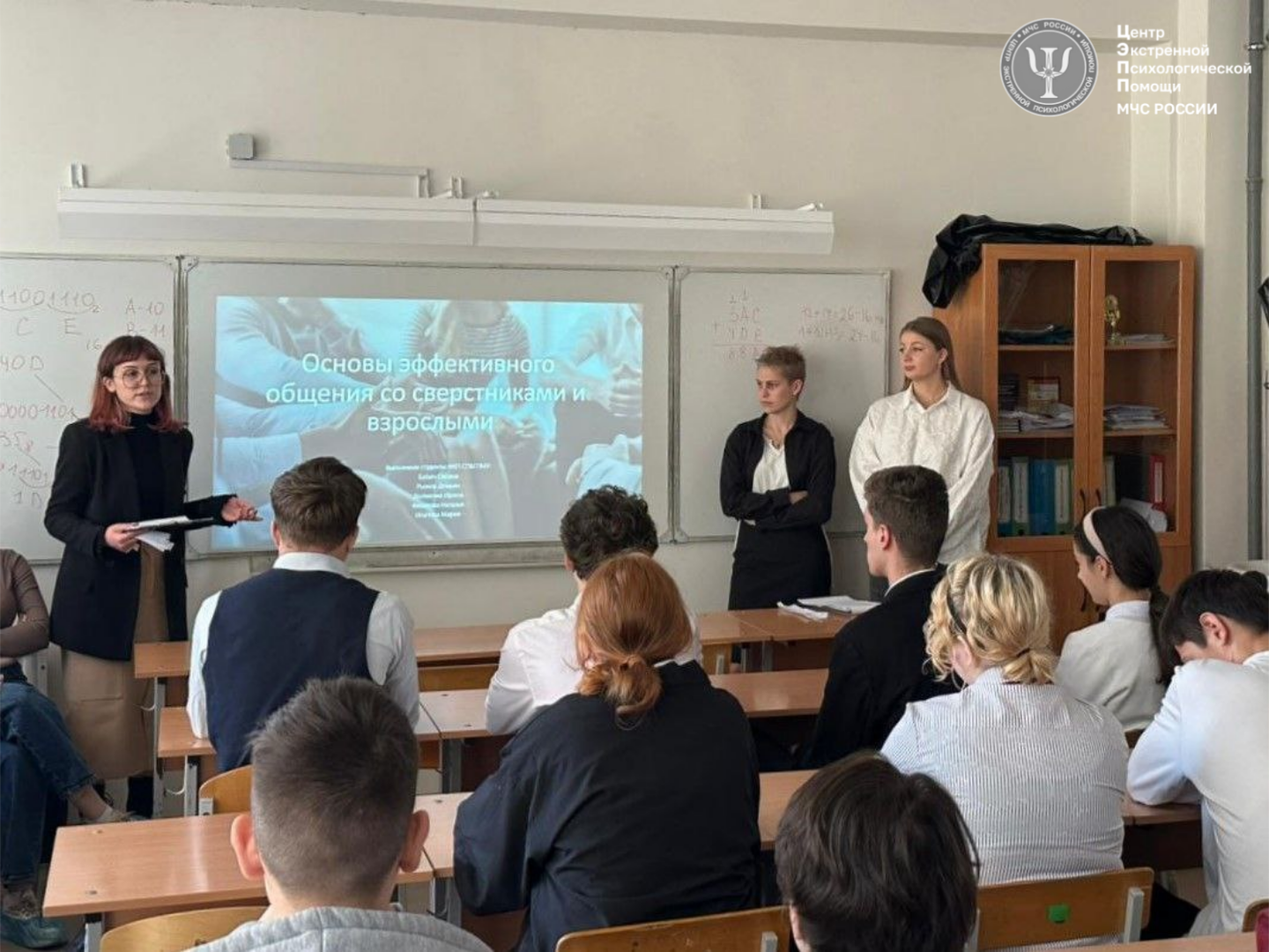 9 октября 2025 года специалист Северо-Западного филиала Центра экстренной психологической помощи МЧС России совместно со студентами-психологами Межрегионального общественного движения «Студенческая добровольческая лига «Надежда» провели для учеников старших классов занятие на тему «Основы эффективного общения со сверстниками и взрослыми». Мероприятие состоялось на базе ГБОУ СОШ № 217 Красносельского района Санкт-Петербурга им. Н.А. Алексеева.