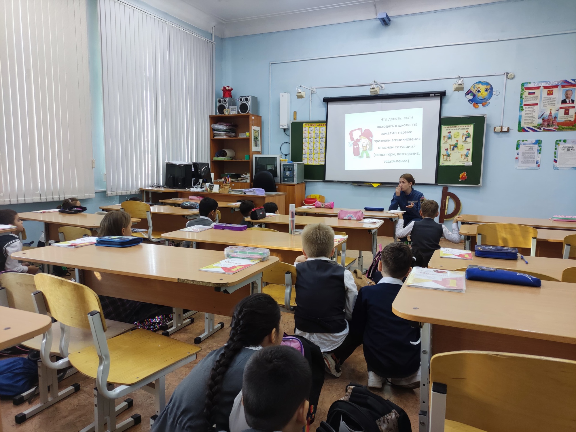 Ребята активно отвечали на уроке и были заинтересованы в выполнении всех игровых заданий. После теоретической части занятия дети перешли к практическим упражнениям. В ситуационных задачах школьникам нужно было помочь главному герою игры справиться с возникшими трудностями, применяя полученные знания. Например, они отрабатывали алгоритм действий при обнаружении подозрительного предмета, проигрывали ситуации общения с незнакомцами, а также тренировались быстро и безопасно эвакуироваться из условного горящего помещения.