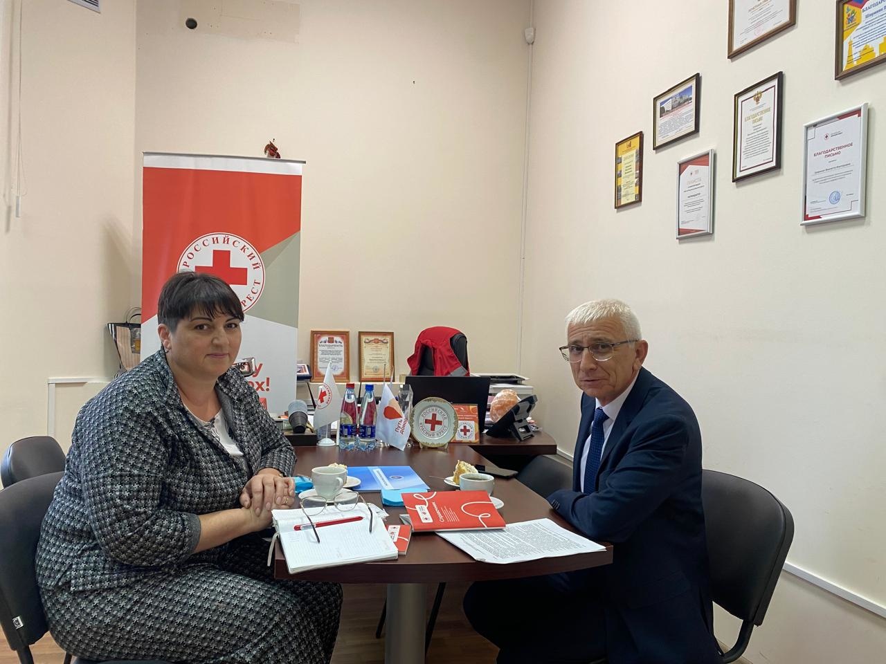 29 октября состоялась встреча начальника Северо Кавказского филиала Центра экстренной психологической помощи МЧС России Кинасова Петра Рубеновича с руководителем Ставропольского регионального отделения Российского Красного Креста Ширинян Виолеттой Викторовной.