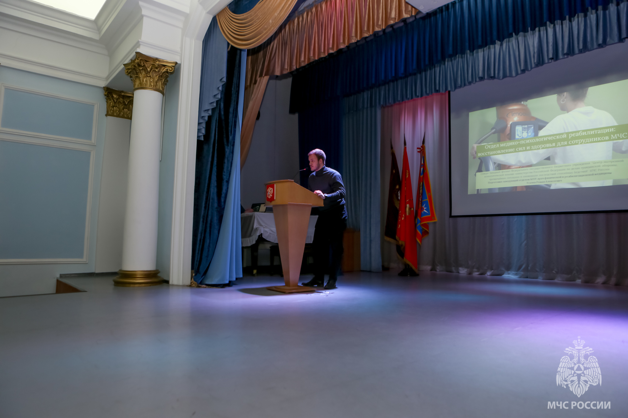 Специалисты отдела медико-психологической реабилитации Северо-Западного филиала Центра экстренной психологической помощи МЧС России выступили перед аудиторией, в которую вошли начальник и руководители структурных подразделений и управлений по районам Главного управления МЧС России по городу Санкт-Петербургу. Целью выступления была презентация возможностей используемого современного диагностического и лечебного оборудования, а также реабилитационных программ, направленных на поддержку физического и психологического здоровья сотрудников ведомства.