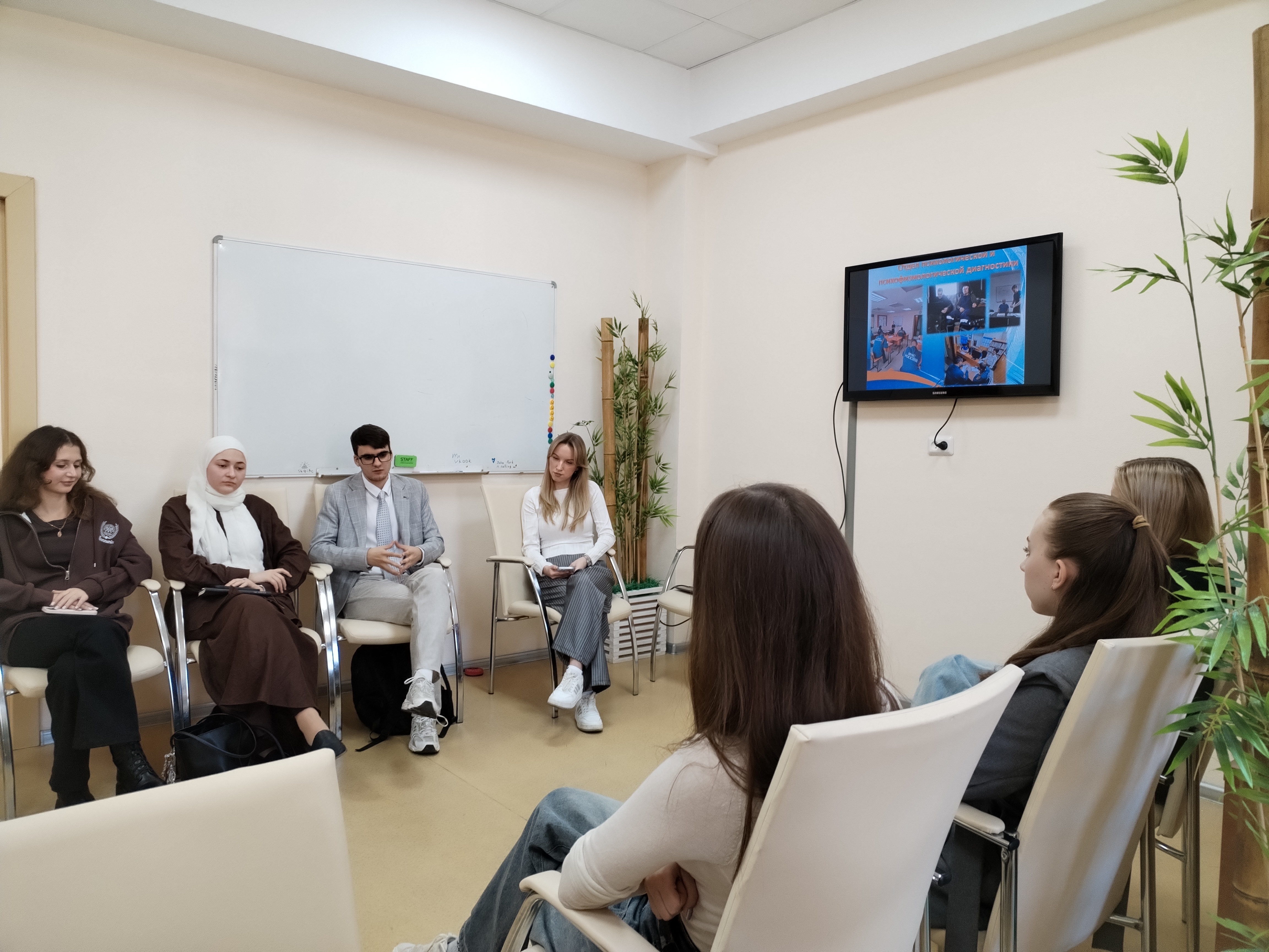 В рамках мероприятия специалисты филиала рассказали студентам про специфику проведения постэкспедиционного психодиагностического обследования специалистам МЧС России, с демонстрацией психофизиологического оборудования; а также обсудили тему профессиональной готовности психологов к работе в чрезвычайных ситуациях, трудности и специфику работы специалистов филиала ЦЭПП. В формате практического занятия специалист филиала рассказал о достижениях студенческого психологического добровольческого отряда «Надежда» на Юге России, а так же провёл агитацию по вступлению в отряд.