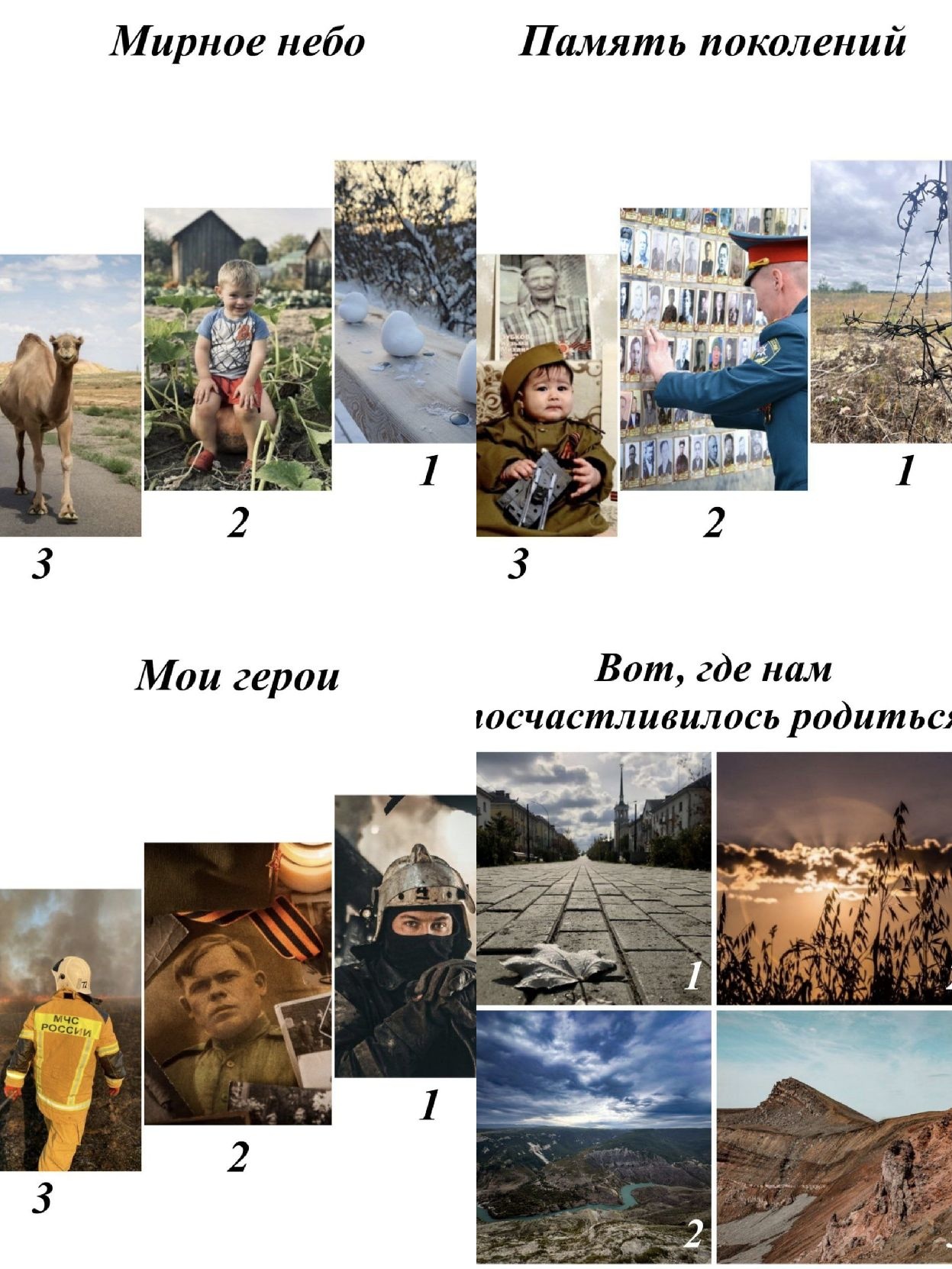 В 2025 конкурс фоторабот сотрудников психологических служб силовых ведомств «Внутренний мир-2025» проходил под эгидой Года защитника Отечества. Тематика была представлена по четырем направлениям – «Мои герои», «Вот, где нам посчастливилось родиться», «Память поколений» и «Мирное небо».