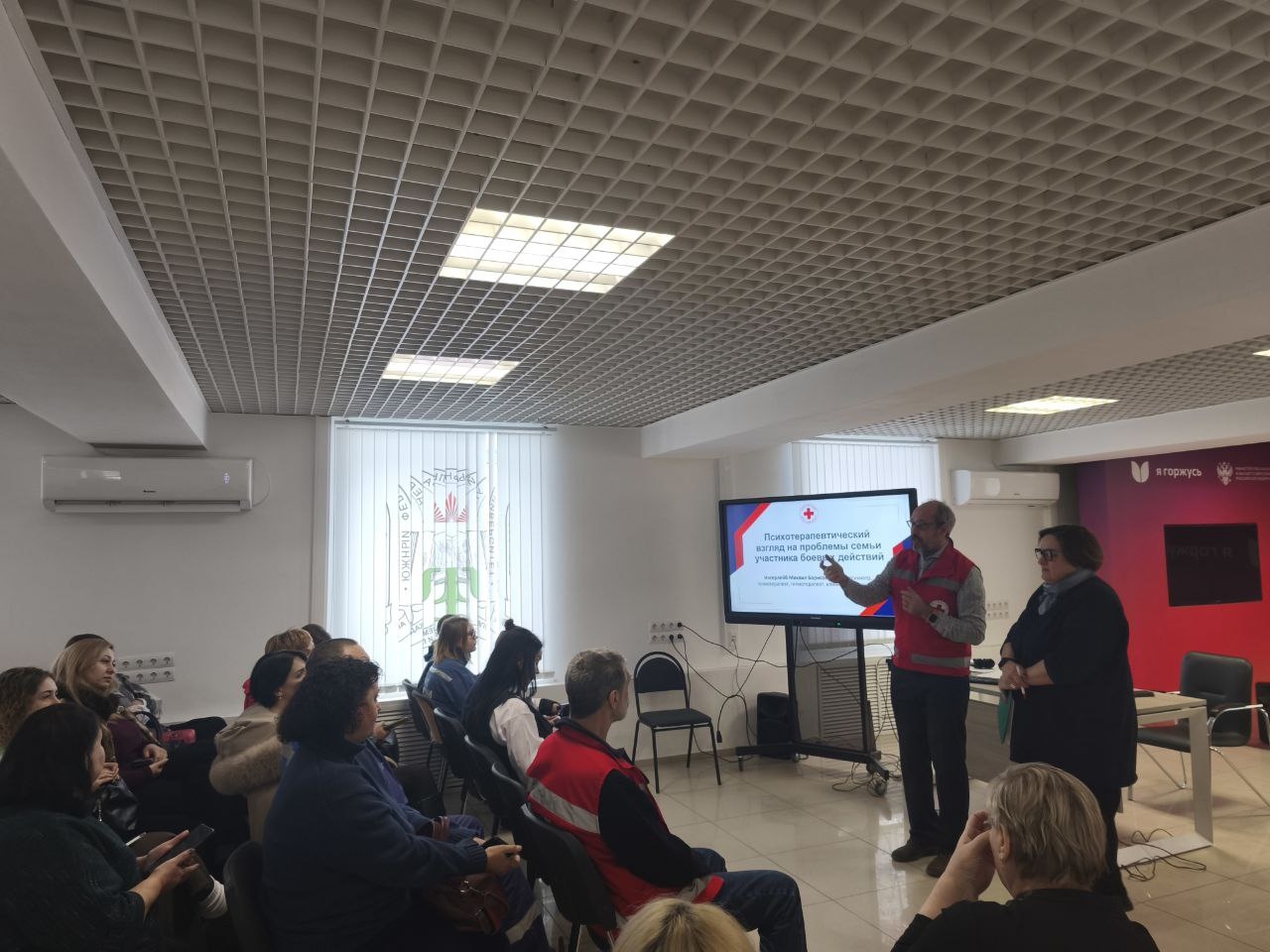 Мероприятие состоялось в Академии психологии и педагогики Южного федерального университета. Психологи Южного филиала выступили с докладом на тему «Работа с горем. Оказание психологической помощи при различных стадиях горевания». Специалисты рассказали о понятии «горевания» – естественного процесса проживания потери. Особое внимание было уделено методам психологической помощи на каждой его стадии.