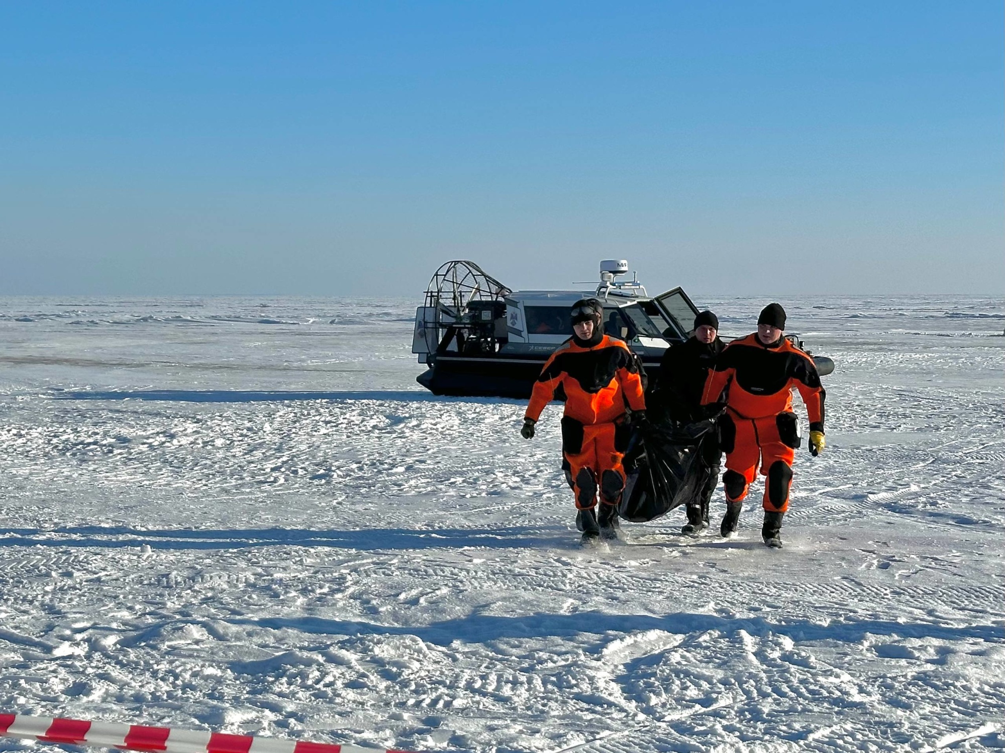 В ходе учений были отработаны две легенды. Согласно первой, водитель снегохода случайно наехал на палатку с рыбаком, который в результате получил травмы. Вторая ситуация моделировала отрыв льдины с находящимися на ней любителями подледного лова.