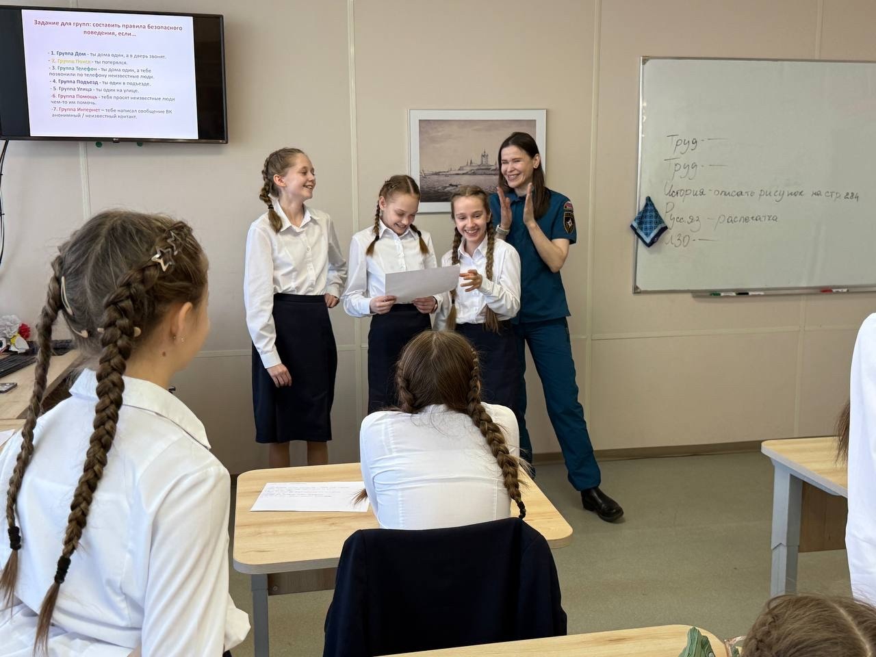 Кульминацией занятия стал совместный творческий проект: участницы мероприятия создали плакаты и короткие рассказы о правилах безопасности.
