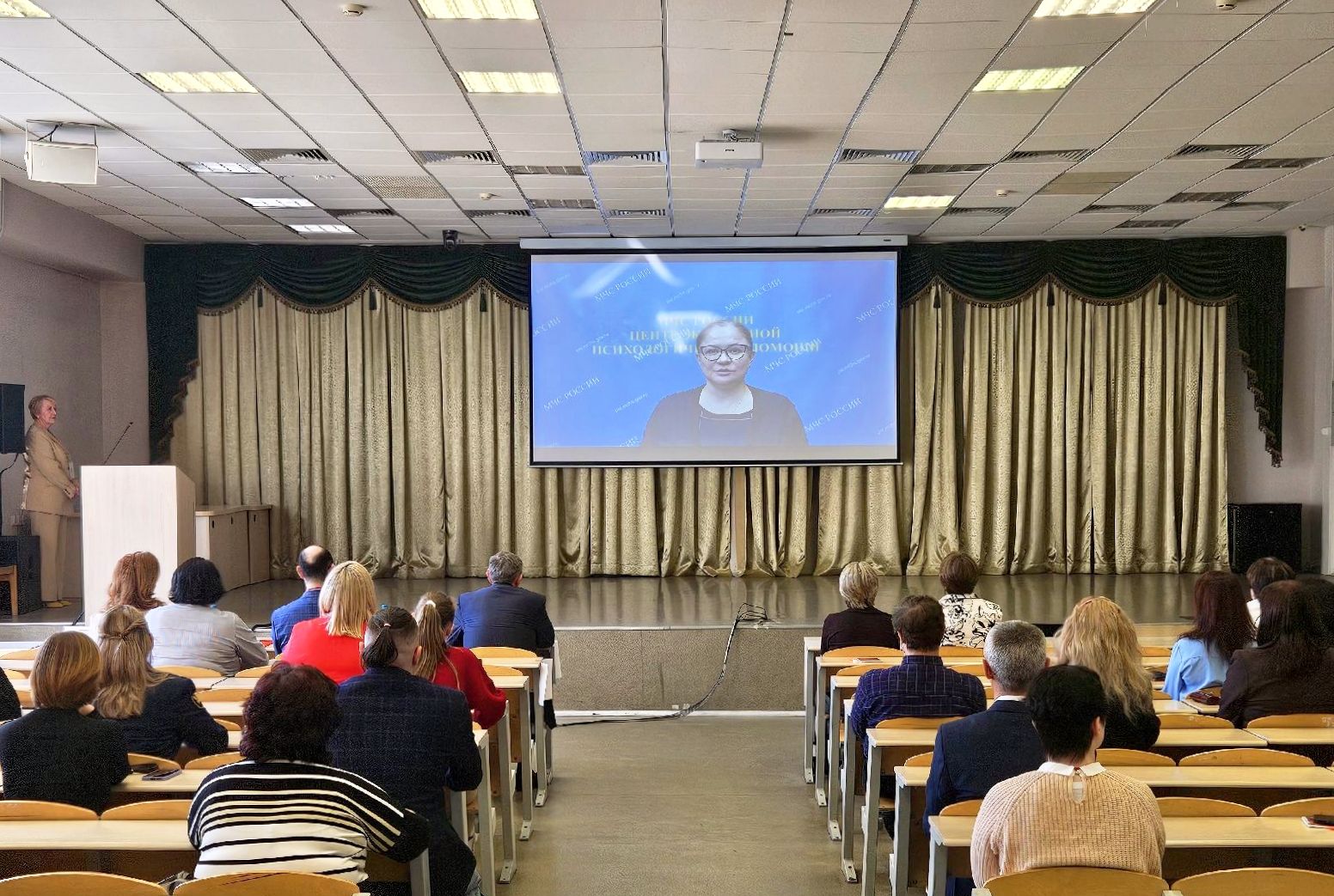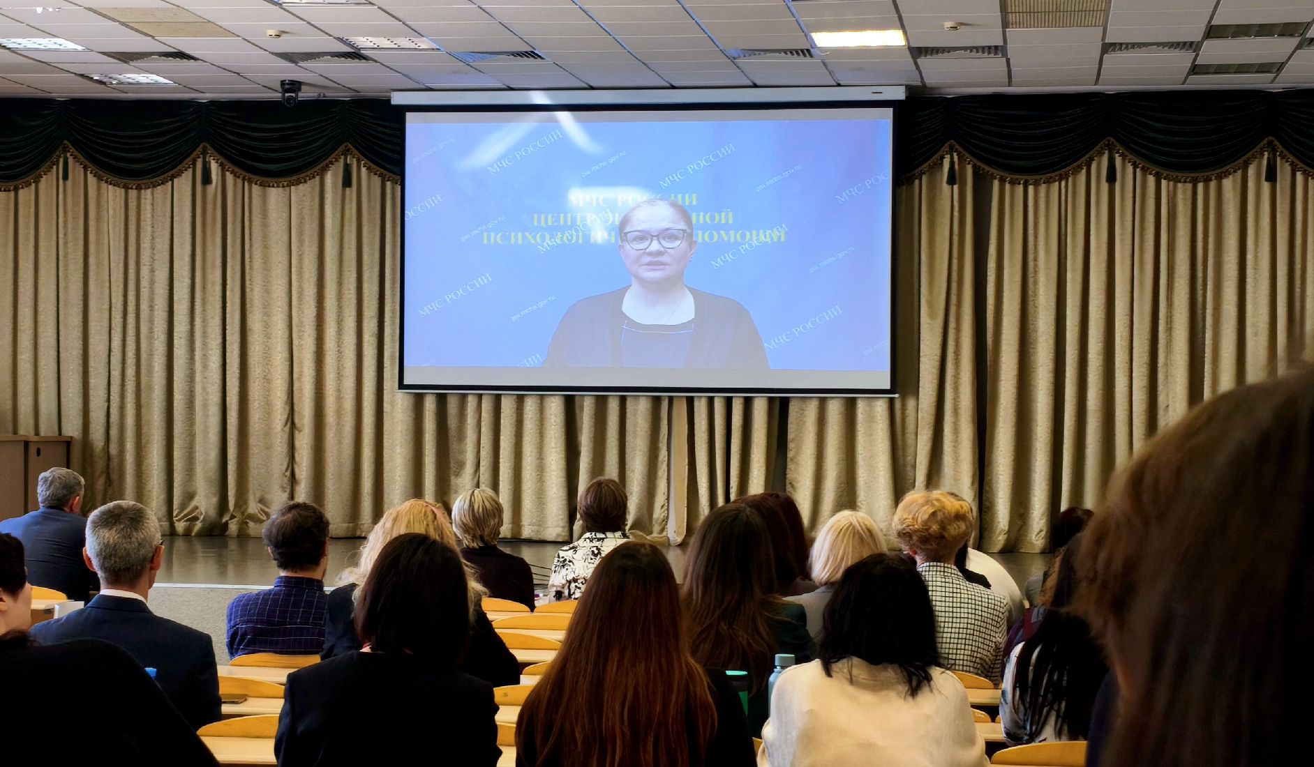 Директор Центра экстренной психологической помощи МЧС России в режиме видеоконференции поприветствовала участников и гостей форума и пожелала им плодотворного сотрудничества в вопросах укрепления взаимодействия психологов-практиков и ученых в области экстремальной и кризисной психологии.