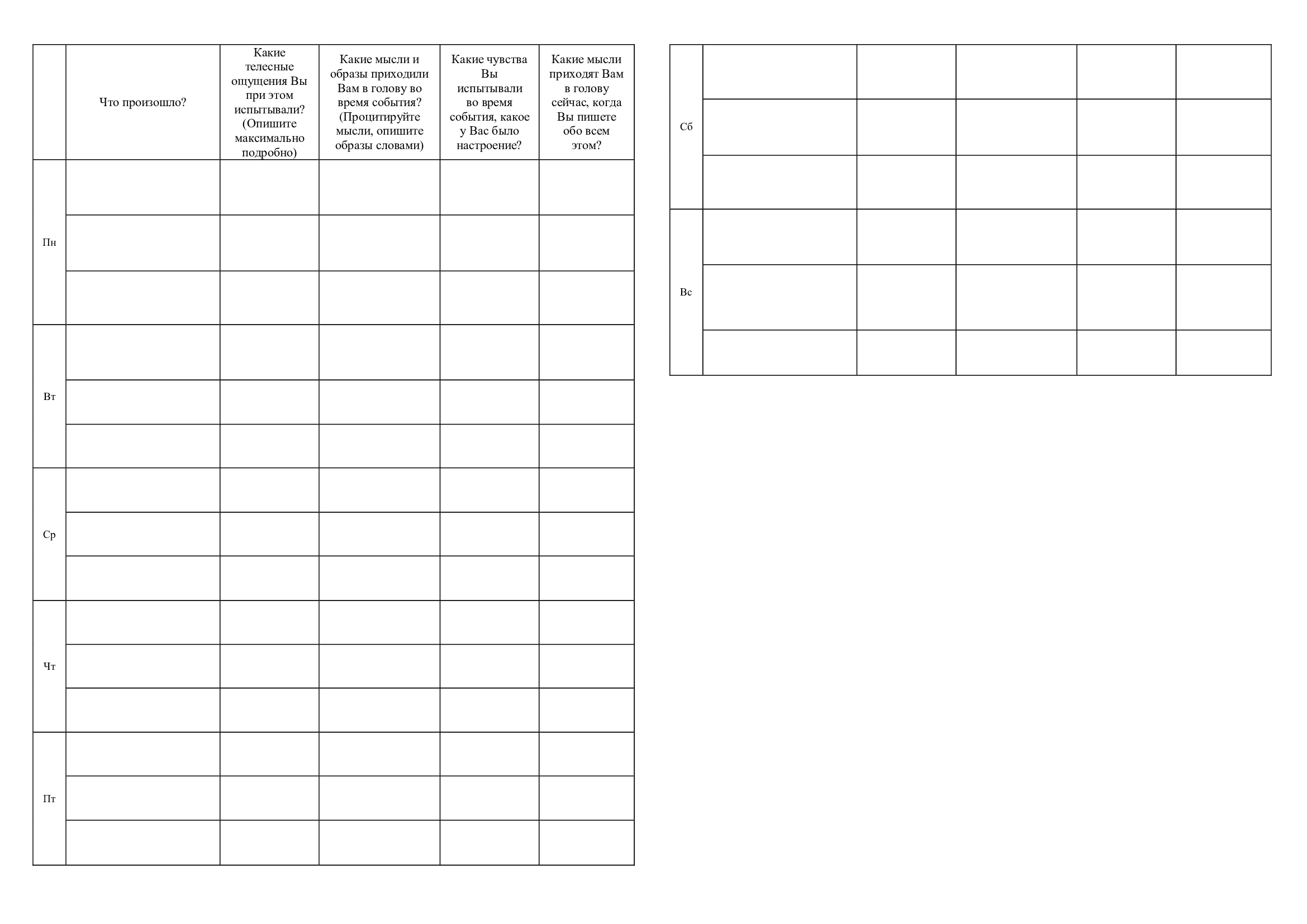 Метод ведения дневника достаточно прост. Сначала вы описываете ситуацию, в которой проявились ваши эмоции, причем описываете только факты: пришел туда-то, сказал то-то, сделал то-то. Например, описываете конфликт: напряженно работал, забыл о встрече с другом, не написал, что не смогу прийти, не извинился. Друг сказал, что не хочет пока обсуждать важный вопрос, который планировали обсудить.